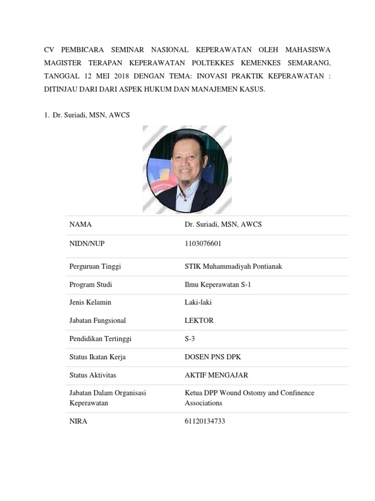 Cv Pembicara Seminar Nasional Keperawatan Oleh Mahasiswa